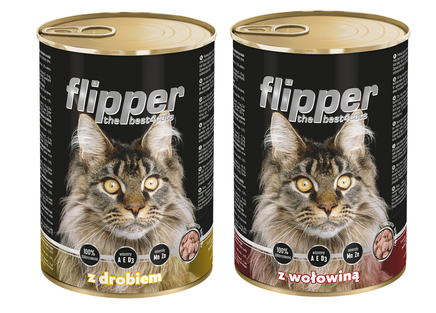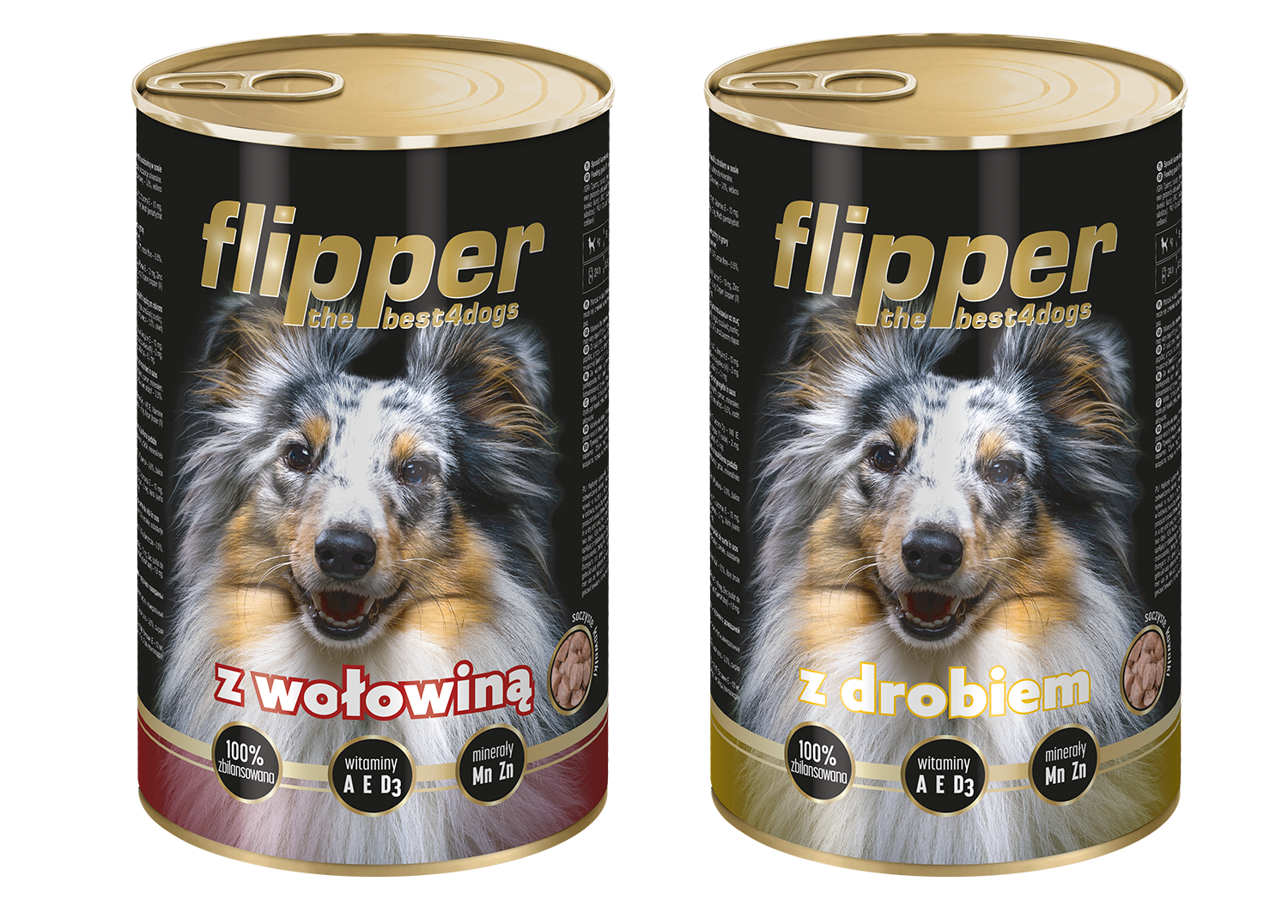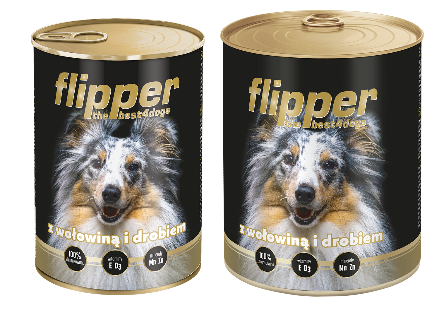 Karma dla psa Flipper z wołowiną i drobiem w sosie to pełnowartościowe i zbilansowane pożywienie. Zawiera wszystkie substancje odżywcze niezbędne do utrzymania Twojego pupila w dobrej kondycji. Dzięki optymalnemu doborowi składników karmy Flipper wspomagają dobre trawienie, utrzymują zdrową skórę i lśniącą sierść, wzmacniają naturalne mechanizmy obronne oraz dbają o zdrowie kości i zębów. Podając swojemu psu karmę Flipper, zapewniasz mu 100% kompletny posiłek, który wyśmienicie pachnie i smakuje. Receptura karmy Flipper nie zawiera barwników, sztucznych polepszaczy smaków ani konserwantów. Karma Flipper produkowana jest ze składników wolnych od GMO i nie zawiera dodatku cukru.